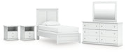 7-Piece: Twin Panel Bed, Dresser, Mirror and Nightstands (2)