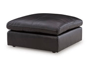 - 100% top grain leather covers the cushion top; skillfully matched faux leather covers the remaining areas